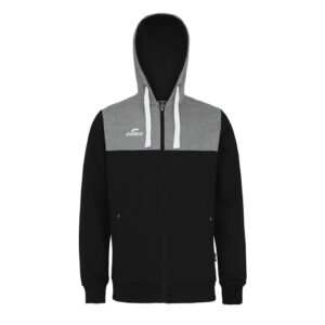 Gamme « molleton» , haut de gamme en polyester, 50% coton, 50% polyester, 300gr/m², intérieur gratté, intérieur capuche coloris opposé, cordons larges type mode (sauf pour tailles enfants), oeillet métal, zips auto-block (central et poches), sweat poches type « kangourou» , empiècements sous bras et finition manches et ceinture en bords côtes, logos 3D printés.